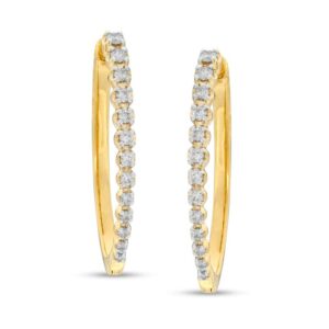 1/2 CT. T.W. Diamond Oval Hoop Earrings in 10K Gold